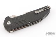 This Strife Linerlock Flipper (233/500) has a satin finished D2 tanto blade with swedge and notched thumbrest. Handle is carbon fiber over titanium liners. Black G10 and titanium backspacer, lanyard loop, and stainless steel tip up clip. Centered blade, flips great, and rock solid lockup. Comes with Brous box and CoA. Excellent condition.