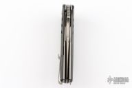 "Jason Brous began his efforts in knifemaking with the benefit of nearly 10 years of experience in CNC machining. His father owns a shop that specializes in the custom machining of high-precision components, mainly for the medical industry. Jason spent a lot of time in his father’s shop while growing up, and by his mid teens was actively helping out with production. His skills and knowledge steadily increased and by the time he was 20 he was a seasoned and very competent machinist. Jason's interest in knives actually began with art - specifically a style called “Bio-mechanical” - as practiced by one of his favorite artists, a Brazilian painter and tattooist named Lango. Biomechanical art (also called Biomech) is a surrealistic style of art that combines elements of machines and robotics with organic animal features. Intrigued by this style of art and its similarity to many fantasy knives, Jason figured that knifemaking would be a natural extension of his metalworking skills and an appropriate medium for his artistic ideas. Although he had no specific training in knifemaking, in 2010 he designed and made his first knife - a fantasy design with a Biomech flavor. Through persistent trial and error, Jason changed his style of knife design to focus on functional simplicity, while still maintaining a strong artistic signature. His early successes came in the form of a series of stout neck knives with dual finger-hole grips. Fans of these “Silent Soldier” neck knives began asking for other expressions of the design. Since then, Jason has created numerous variations including a clip point version, a tanto version and the very popular folder version called the Silent Soldier Flipper."