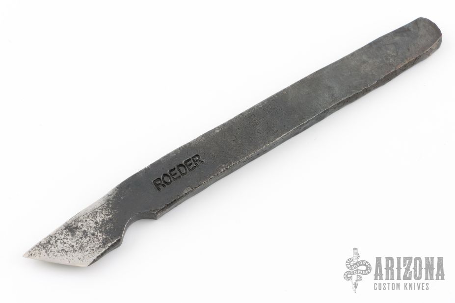 This kiridashi by Journeyman Smith David Roeder features a satin finished chisel ground blade with forge finished handle, .245" blade stock and .606" blade depth, integral construction. The handle is stamped "Roeder" on the handle. New from maker.