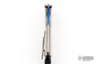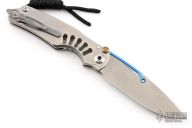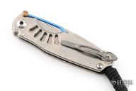 "In Chris’s opinion, Grant and Gavin Hawk are the most innovative design team in the industry. In early 2010, the Hawks showed Chris the concept of a new locking mechanism—one that Chris felt he could engineer and Chris Reeve Knives could manufacture. It has been a lack of capacity not a lack of desire that has precluded Chris Reeve Knives from producing Hawk Designs thus far. It is an honor to present the Ti-Lock. The Ti-Lock mechanism was originally conceived as a means to isolate the lock from the body of the knife, in order to allow more design freedom for handle and frame. Completely ambidextrous, the Ti-Lock allows equal left and right hand use. The Ti-Lock is not an exercise in ultimate lock strength; it is an exercise in mechanical innovation and an illustration of a passion shared by Grant, Gavin and Chris. This passion is also shared by many of our customers—those who buy our knives in appreciation of the design, quality and precision put into our product." The entire frame of the Ti-Lock is composed of tumble finished titanium complimented by a spring titanium tip up carry pocket clip. Comes with original box and papers dated October 3, 2012. Excellent condition.