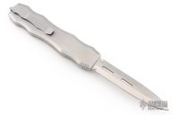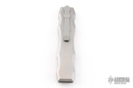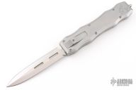 This Brand New Sand Shark OTF double action automatic by Desert Knife Works features a satin finished double edge blade and a bead blasted stainless steel handle with matching tip down clip. Comes with original tube and pouch. New from maker.