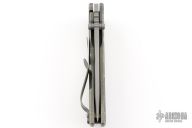 This MAC2 features a stonewashed tanto Magnacut blade with dual thumbstuds and a notched thumbrest.  The handle features a Vault Boy Atomic Green finished titanium frame with a matching tip up pocket clip. New condition. Comes with original box and COA.