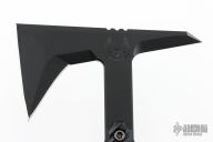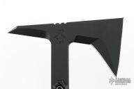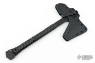 The Ragnarok 14" is a full tang tomahawk made from .270" 80CRV2 carbon steel and features grippy 3D contoured Black G10 handle scales. The handle end features a one of a kind pry-bar feature, and the holes provided in the handle allow for the addition of paracord to help lock it in to your hand for aggressive use. The Ragnarok is your high-end skeleton key that gives you access by prying, chopping, cutting and smashing!