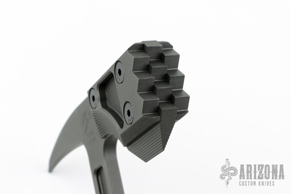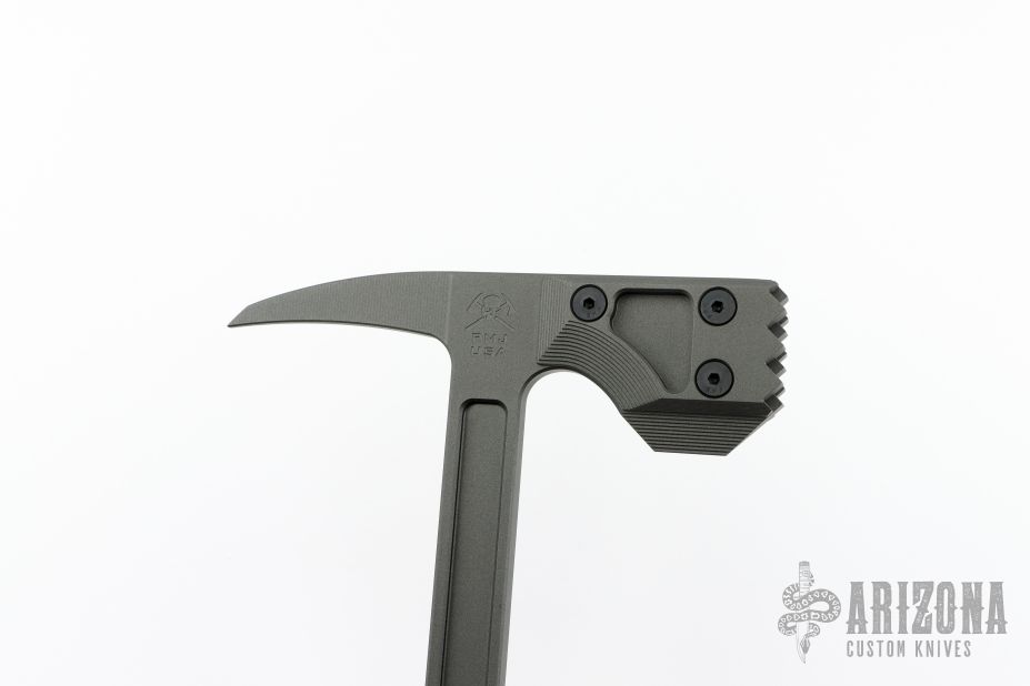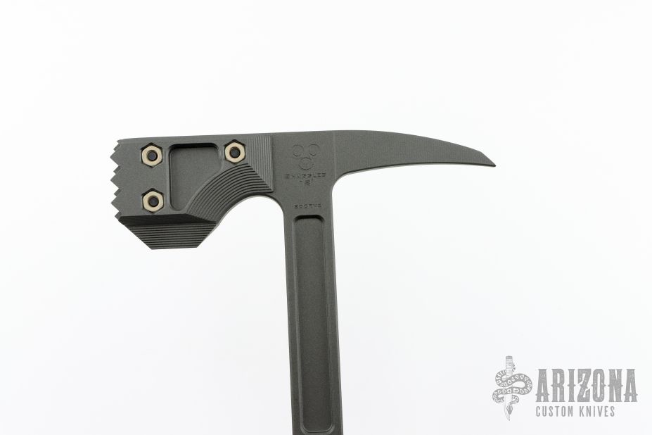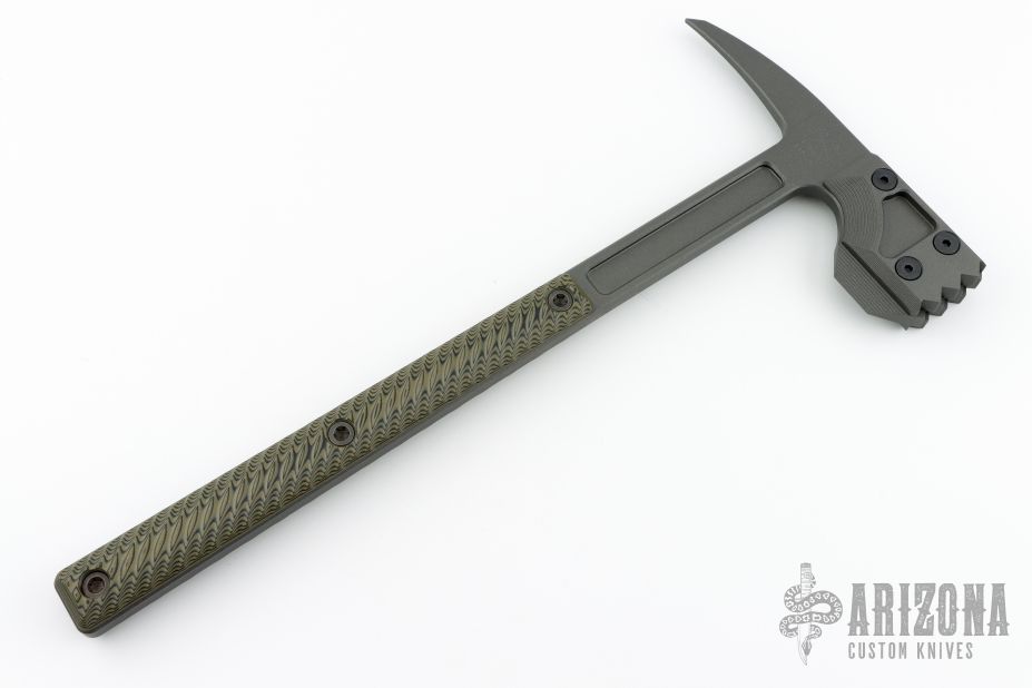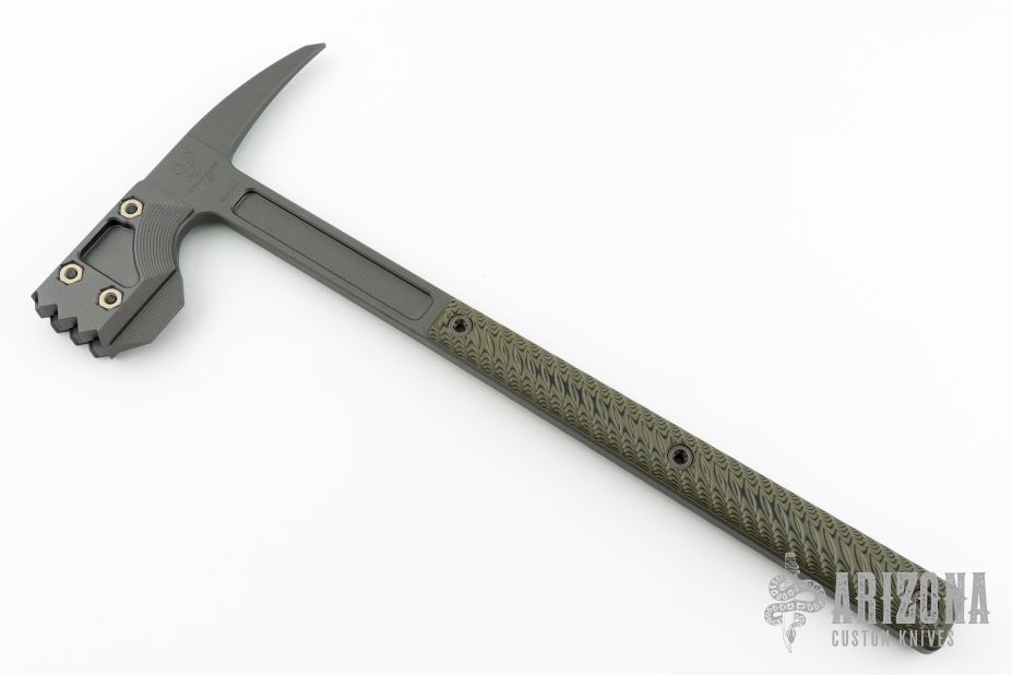 Snuggles, the modern War Hammer Breaching Tool follows our mantra, one tool many tasks. It combines bad ass looks with formidable capability in one package. At a CQB length of 18" it can used in tight areas where traditional longer tools may have a tough time. It is a tool Ideally suited for a patrol car or emergency vehicle, providing you a quick action tool for breaching a door or window. The large 8 5/8" head features a "meat tenderizer" style head with a tapered beard, and the other end features a 3 13/16" distal taper spike for puncturing.