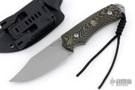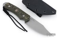 This Hide Fighter by Steve Woods and Wilson Combat features a bead blasted blade .125" black stock and 1.454" blade depth, full tang construction. The handle has black/green G-10 scales. Comes with a kydex sheath, challenge coin and COA. New from maker!