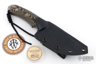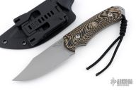 This Hide Fighter by Steve Woods and Wilson Combat features a bead blasted blade .125" black stock and 1.454" blade depth, full tang construction. The handle has black/tan G-10 scales. Comes with a kydex sheath, challenge coin and COA. New from maker!
