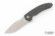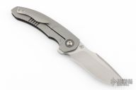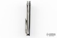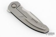 Designed by Walter Randolph and made by Alliance Designs this Deimos features a bead blasted blade with satin finished flats.  The frame is composed of carbon fiber and titanium complemented by a tip up titanium pocket clip.  Zirconium pivot collars. Nice detent, lock up, and blade seating. Comes with original box and zippered case. Has a couple very light scuffs, otherwise excellent condition.
