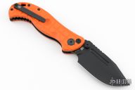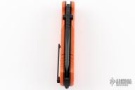 - Secured to the frame with steel torx fittings, the G10 handle scales incorporate a bow drill on both sides of the handle for ambidextrous use.