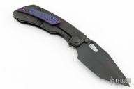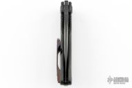 This Evolution 4.0 by Custom Knife Factory features a DLC finished tanto blade with notched thumbrest and thumbhole. The handle has a DLC bark finished titanium frame with a backspacer with a custom Timascus tip up pocket clip. Comes with velcro case, extra hardware, and COA. Nice detent, lockup and blade seating. #20 and dated 1/24.  Excellent condition.