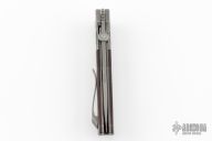 This Eagle Rock linerlock is from Custom Knife Factory and designed by Bob Terzuola. It features a tumble finish multi-ground blade with fullers and false top edge, notched thumbrest and a thumbdisc. The handle has Timascus pivot collars, stonewash bolsters, carbon fiber scales, stonewash titanium liners, stonewash backspacer, tip up titanium clip. Nice blade seating, detent, and lockup. Comes with Maker's velcro case, extra hardware and COA #368 02/24. Excellent condition.
