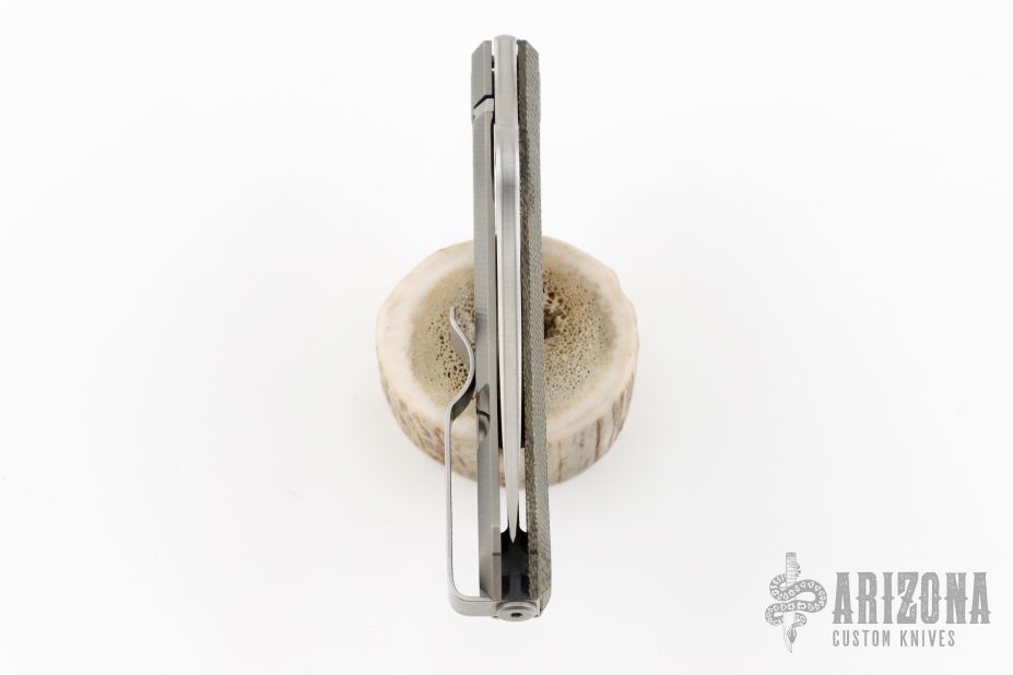 - Canvas micarta handle scales Reeve Integral Lock (frame lock).