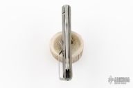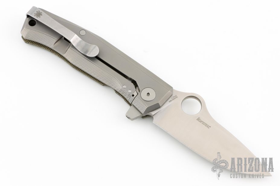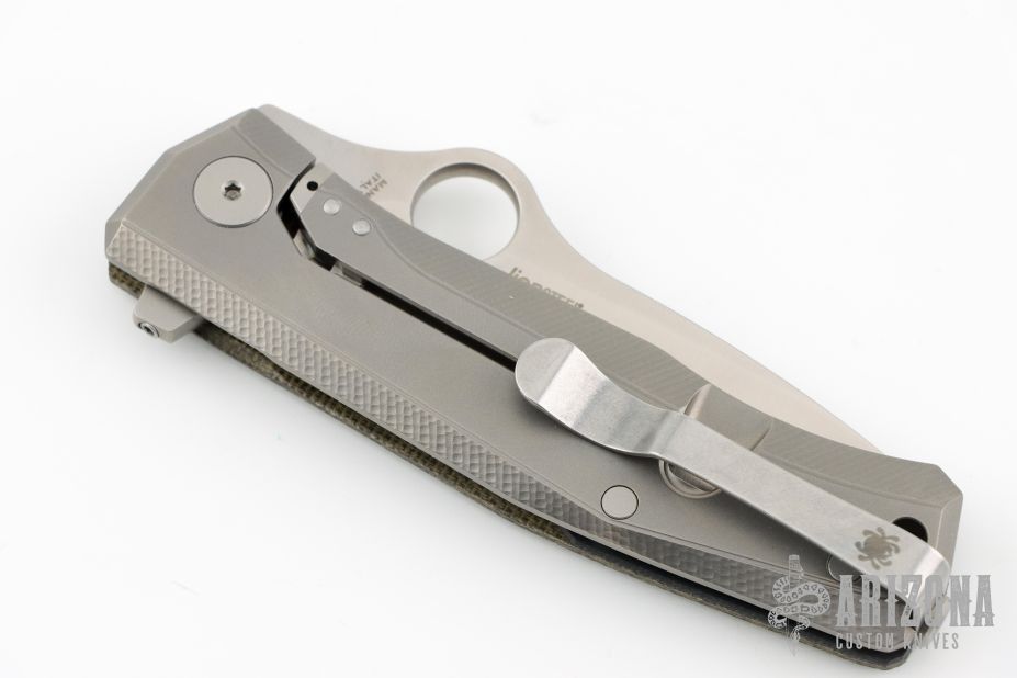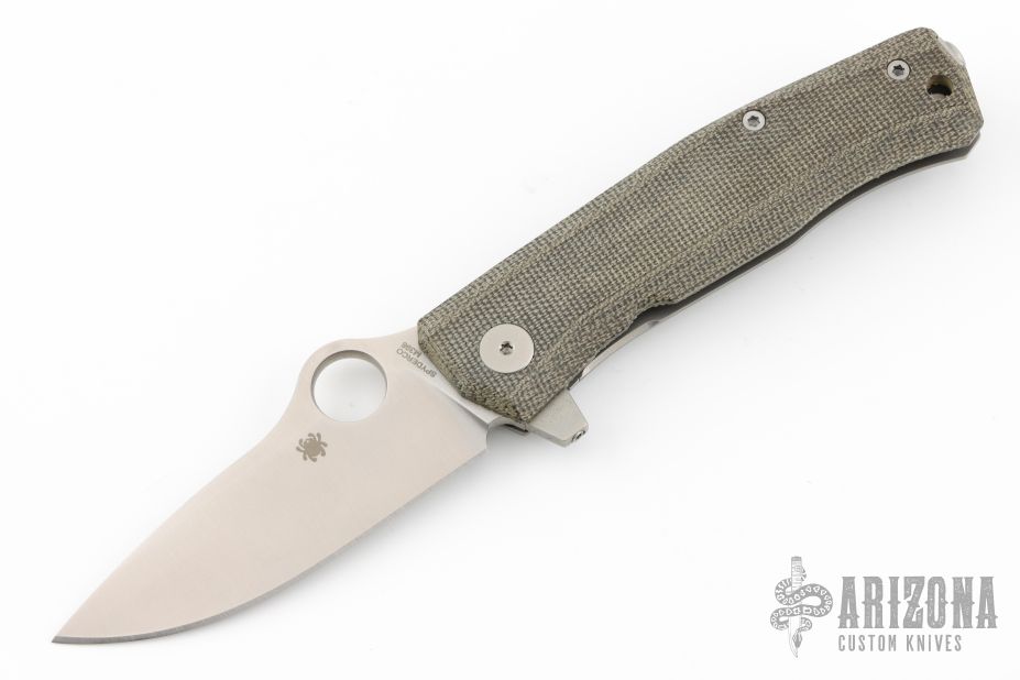The SpyMyto is inspired by the LionSteel Myto, an aesthetically sleek design that is built for the gentleman and operator for everyday carry. It's got the Trademark Round Hole and is outfitted with a removable flipper tab. It has a linerless green canvas Micarta showside scale and a frame lock on the back side for solid lockup. This is a Flash Batch that is individually serialized and extremely limited.