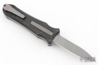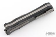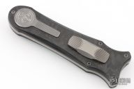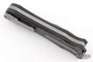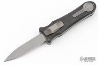 This knife is a Deadlock Model B. It has a bead blast finish dagger-shaped drop point blade. The handle has a carbon fiber and titanium frame with a tip down titanium clip, bead blast finish titanium. The thumb slide on the handle is also titanium and handle has titanium overlays. Grant and Gavin Hawk set out to create a double action OTF with no blade play.... They did it, NO blade play. Dated 2018. This one does not have the spring clip, which is an upgraded option. Comes with maker's zipper case, card, and tool. Excellent condition.