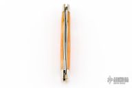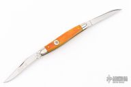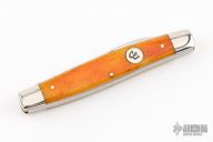 This 2-Blade Muskrat by Colonel Coon features mirror finished blades with nail nicks. The handle has nickel silver bolsters, orange bone scales, brass liners, stainless steel springs. Comes with original box. Excellent condition. One of 200