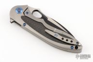 The more we handle the Zephyr, the more we appreciate every little aspect that makes it such an incredible everyday carry blade. The first thing that jumped out at us was the wide blade and slender handle, a look we absolutely love. But upon closer inspection, the design of the thumb ramp and thumb slot are so perfectly executed, that we're astonished we haven't seen them on more designs already. The shape of the thumb ramp is just ideal while the stepped milling of the thumb slot makes finding it and using it simple and responsive. Add in the ceramic bearings and you have a knife that glides open no matter your preferred opening method. The tasteful carbon fiber inlays are contoured, as is the rest of the titanium handle, making for the supremely excellent grip this knife possesses. Add a unique blade shape that seems to taper down toward the handle and you have a knife that, in short, is a must-have in your collection and/or EDC rotation.