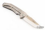 The REN model looks like it will be a winner to comes from the famed Japanese knifemakers. The blade shape is a "Tanto-Honzukuri" or a "Tanto-convex" blade shape. As you know, they are making to the "Tanto" blade shape with the CHI model but this blade shape is "Tanto-Shinogizukuri". That means straight grind. There are only a few knife makers who make this kind of blade shape but, we have never seen a "Tanto-Honzukuri" with mirror polished surface. The handle is a combination of carbon fiber for the presentation scale with a titanium frame lock allowing for excellent weight and balance. It may not look like a Rockstead but we expect the REN to be one of the best performing knives produced anywhere in the world. Includes the Original box and papers #094. Excellent Condition.