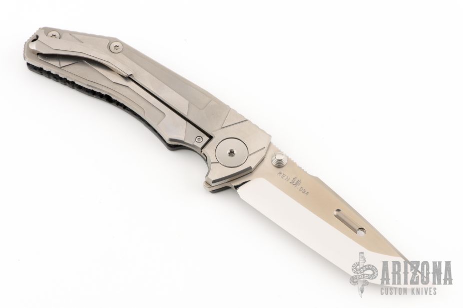 The REN model looks like it will be a winner to comes from the famed Japanese knifemakers. The blade shape is a "Tanto-Honzukuri" or a "Tanto-convex" blade shape. As you know, they are making to the "Tanto" blade shape with the CHI model but this blade shape is "Tanto-Shinogizukuri". That means straight grind. There are only a few knife makers who make this kind of blade shape but, we have never seen a "Tanto-Honzukuri" with mirror polished surface. The handle is a combination of carbon fiber for the presentation scale with a titanium frame lock allowing for excellent weight and balance. It may not look like a Rockstead but we expect the REN to be one of the best performing knives produced anywhere in the world. Includes the Original box and papers #094. Excellent Condition.