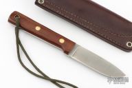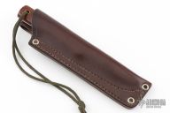 This Genesis by LT Wright features a satin finished flat ground blade with .119" blade stock and 1.012" blade depth, full tang construction. The handle has brown canvas micarta scales. Comes with original brown leather sheath. Excellent condition.