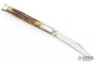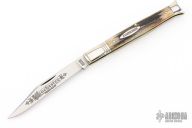 This Winchester folder features a mirror polished blade. Nickel Silver front and rear bolsters with stag covers. Brass liners and steel springs. Original box. Excellent Condition.