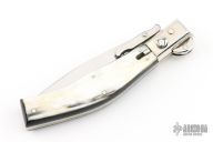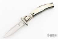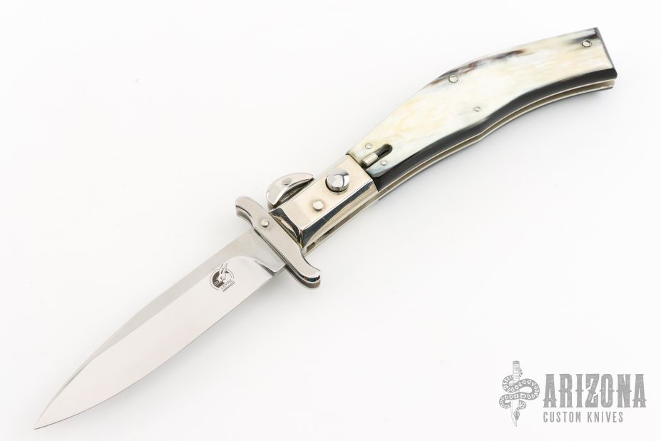 Angelo Campolin Sr. was born in 1923 in Maniago, Italy. He worked on perfecting his knife making skills before WWII and at this time made his first switchblades. After the war, in 1947 he started his company and made 30 stilettos with the marking “Angelo Campolin”. In the 1970’s Angelo’s son Gianni started to work in the company and they were specializing in folding hunting knives and also manual folding stilettos for the Robert Klaas company in Solingen Germany with their Kissing Cranes mark. In 2002 American switchblade collectors Dan Fuller, Brad West, and Tim Zinser were visiting Maniago and enjoying a few glasses of wine in a bar with Angelo Jr. and Gianni. The discussion was about a new name for some knife projects they wanted to pursue. It was Brad West that suggested the tang stamp should be AGA, for Angelo, Gianni, Angelo, thus representing three generations in the knife making business. The Campolins liked it and it stuck. In the beginning it was just a few items, but grew to the point where now there are 12 models and different scale options. The goal has been to offer quality switchblades using the old methods and traditions. Being a collector himself, Angelo Jr. knows what others like. The company headquarters has moved to Austria with production still in the original Maniago shop, as well as the others in Maniago that produce the knives for A.G.A. Campolin.
