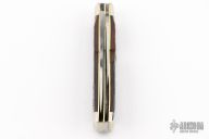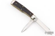 This Winchester folder features two mirror polished blades. Nickel Silver front and rear bolsters with jigged bone covers. Brass liners and steel spring. Original box. Excellent condition.