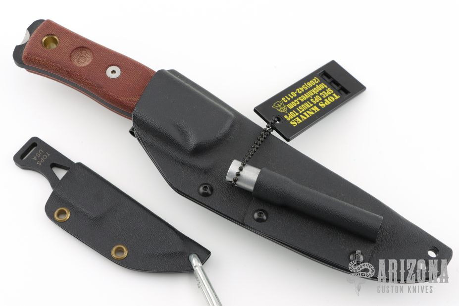 In late 1998, TOPS Knives was founded with a mission to create the highest-quality knives around. Our Knives are tools, designed and built using the extensive knowledge and real life experiences of many Operators with backgrounds in Military, Law Enforcement, outdoor professions, and Martial Arts. Specifically, we have worked with designers with backgrounds ranging from Navy Seals to Airborne Rangers, from Martial Arts instructors to survival experts, and from SWAT Team Members to Native American weapons experts. We have a designer from nearly every background that uses hard-core knives. Perhaps the best part, all TOPS fixed blades are manufactured and hand-finished at our facility in the heart of the Rocky Mountains, USA.