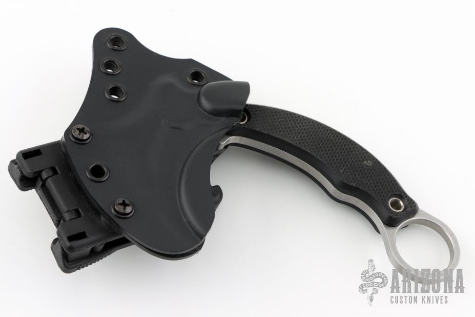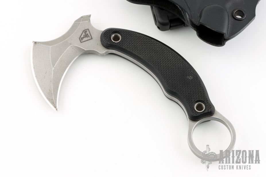In the pantheon of Indonesian/Malaysian and Filipino style knives, there are many called Karambit but only one called "The Halcon". Developed by Rob "Filo" Cabrera, who also happens to be head designer and Division Director at DoubleStar Blades, the Halcon optimizes cutting positions and striking angles for any military or self-defense situation. Custom machined from 3/16ths thick Nitro-V stainless steel with a ferric chloride tumbled finish and toxic green/black G10 scales, this handmade blade is ready for anything you can throw at it.