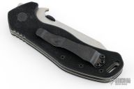 This Bulldog by Emerson Knives features a stonewash chisel ground blade with thumbdisc, notched thumbrest and wave feature. The handle has textured black G-10 scales, titanium liners, black stainless steel clip. Has some scuffs on the clip. Excellent condition. Comes with original box and papers. #0383.