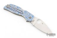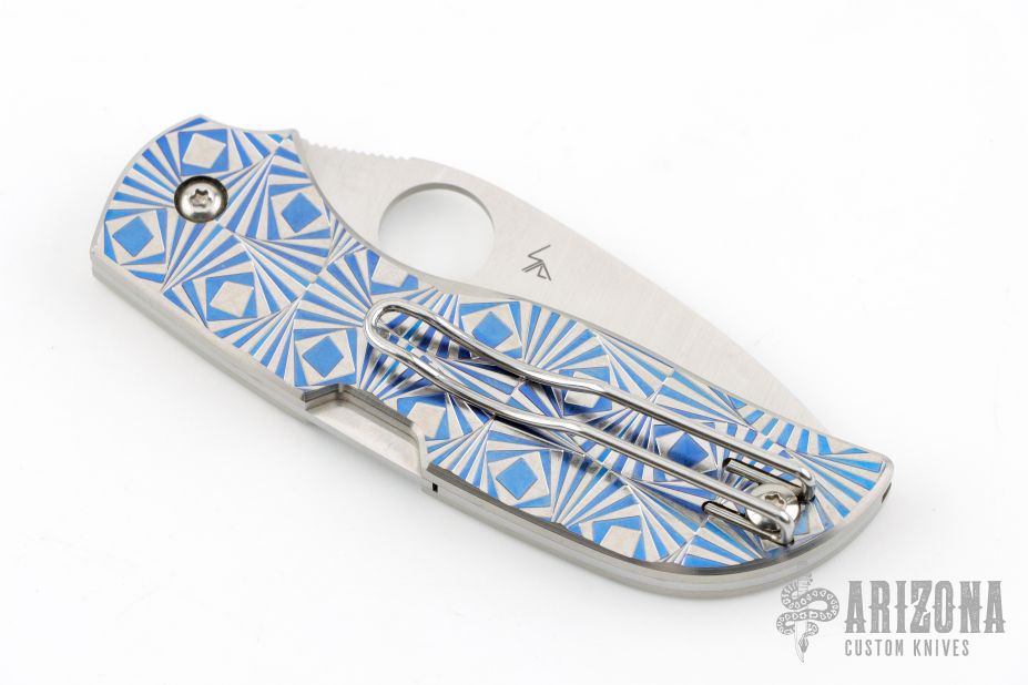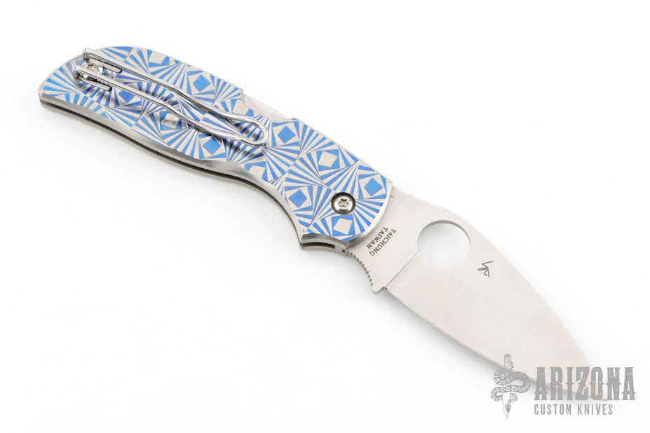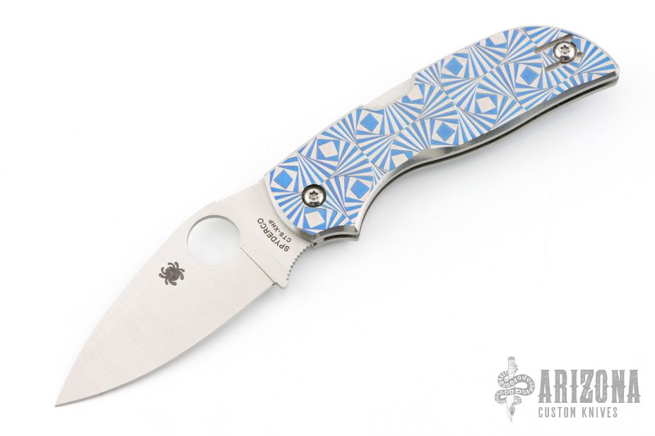 A Chaparral is a shrub native to the Western United States with the unique ability to perennially survive, revive and regenerate after being destroyed by drought. It’s also what Spyderco calls a new and continuing series of gentlemen’s folders. Mid-sized Chaparral folders will have identical blade and handle profiles but showcase variant handle materials. Handle options will be chosen for their elegant appearance and functional utility with a focus directed at making the Chaparral series unique as well as a serious contender in the gent’s knife genre. The Chaparral 2 has a unique textured titanium handle with a mid-positioned back lock and screw-together construction. Attached to the ultra-slim handle, a left-right, tip-up pocket clip arranges the knife deeply inside a pocket. CTS-XHP stainless steel blade. The blade is flat ground and plain edged for the best available cutting performance with non-skid jimping located at both the spine and choil. Excellent condition. Comes with original zippered case and papers.