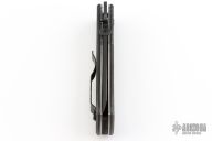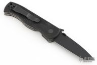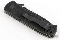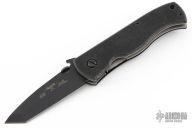 This CQC-7 by Emerson Knives features a black chisel ground tanto blade, notched thumbrest, thumbdisc and wave feature. The handle has black G-10 scales, titanium liners, black backspacer and tip up black stainless steel clip, lanyard hole at the butt. S/N 7798. Comes with original box and papers. Has some scuffs on the clip. Excellent condition.