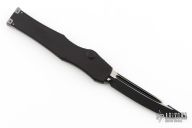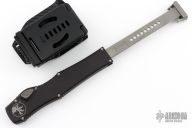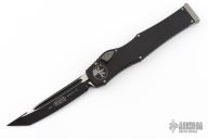 This Halo VI by Microtech knives features a black tanto blade with fullers and satin flats. The handle has a black aluminum frame with blasted stainless steel hardware and charging handle. Dated 08/2018 and s/n 2240. Comes with original box, sheath and papers. Has some light scuffs, otherwise excellent condition.