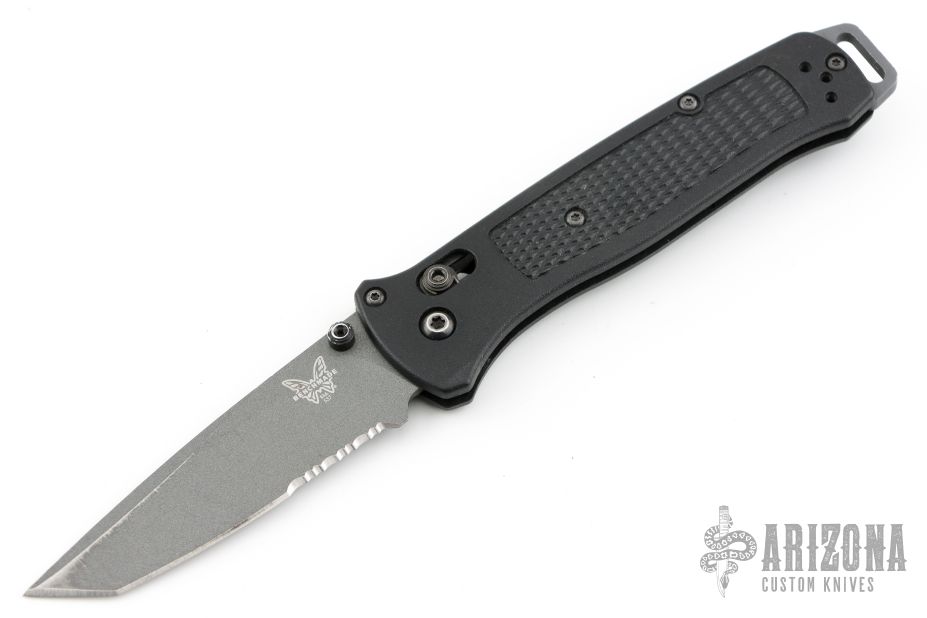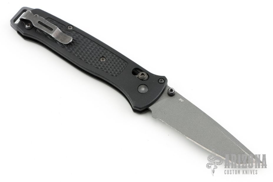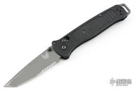 Benchmade is changing the tactical game once again, with the lightweight and nimble 537 Bailout Series. This slim, pocket friendly folder weighs in at just over 2 ounces, with a black Grivory handle and a gray Cerakote finished tanto blade with a partially serrated edge. Tough CPM-3V steel provides a tough cutting edge with excellent retention. An extended aluminum pommel lanyard slot and a reversible pocket clip complete the package.