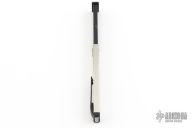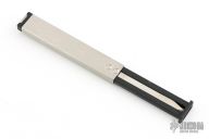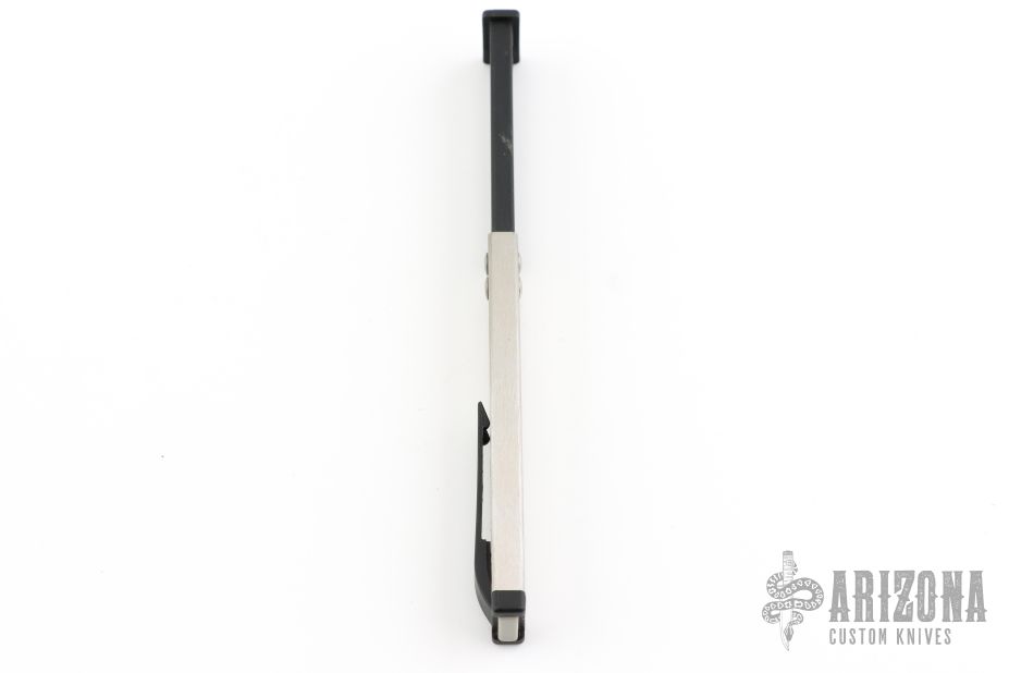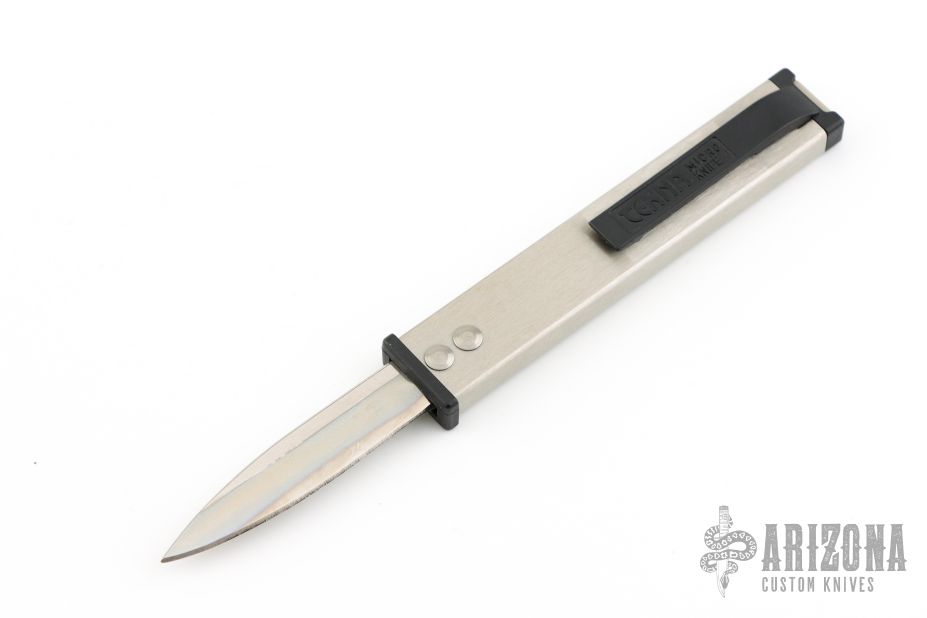 Unusual automatic where the blade is fixed and the release button retracts the guard. Polished drop point blade. Comes with original papers. Has a couple light scratches, otherwise excellent condition.