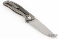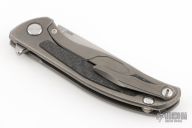 This Model 95 framelock from Shirogorov features a flat ground matte finished blade with notched thumbrest and flipper. The handle has a tumble finish titanium frame with carbon fiber inlays and a matching tip up clip and a single titanium barrel spacer at the butt along with a lanyard hole. Excellent lockup, strong detent, and nice seating. Comes with a zipper case. Has some light scuffs and scratches, excellent condition otherwise.