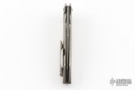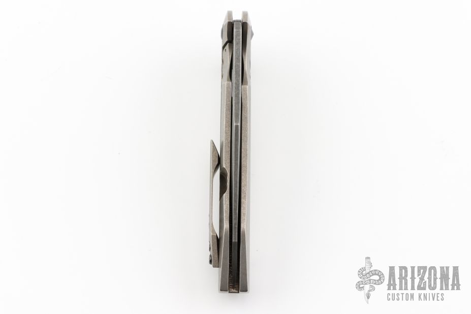 This Mako framelock flipper from Gavko Knives features an acid/tumble finished blade with a flipper. The handle has milled and tumbled titanium scales that have a titanium clip positioned for tip up carry. Comes with zipper case, and keychain. Nice detent, lockup and blade seating. Excellent condition.