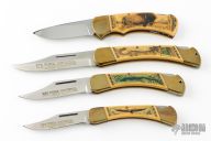 Very Fine Blade Etching on Both sides of Blade with Full Gold Fill on each knife.