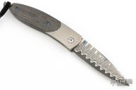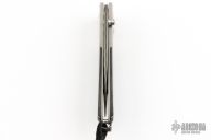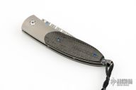 This B05 by William Henry features a San Mai Damascus blade with a bead blast finished titanium frame, carbon fiber scales. Includes original box, card dated Jan 12, 2007, and sheath. Excellent condition.