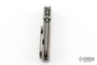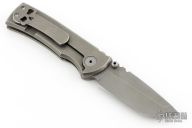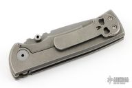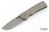 This Chaves American Made Knives Redencion 228 is a framelock folder based on the popular Redencion custom knife made by Ramon Chaves. This piece features a tumbled and bead blasted blade with notched thumbrest and dual thumbstuds. The handle is comprised of tumbled titanium scales over titanium barrel spacers. Matching signature "Chaves Skull" tip up clip. Lanyard pin in pommel. Excellent condition. Comes with a zipper case and Chaves polish cloth.