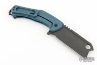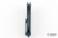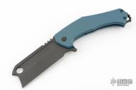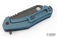 This Orphan by Eric Luther features a Cobalt Cerakote coated blade with satin flats, milled fullers, hole in blade, notched thumbrest, flipper. The handle has a Blue Cerakote, cobalt finished titanium backspacer with lanyard hole, blue coated tip up titanium clip. Comes with zipper case. Nice detent, lockup and blade seating. Excellent condition.