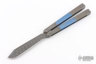 This Fortress 2 Spy Balisong by Atropos features a customized and textured blade. The handles are bead blast, texture, and anodized finished, with titanium spacers. Comes with original zipper case, tool, and stickers. Has a couple light scuffs, excellent condition otherwise.