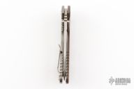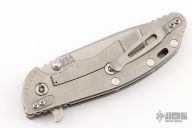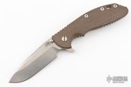This XM-24 by Hinderer Knives features a stonewash finished slicer blade with notched thumbrest and flipper and dual thumbstuds. The handle has a brown G-10 scale, stonewash finished titanium frame, liner and reversible clip. Comes with a zippered case. Excellent condition.
