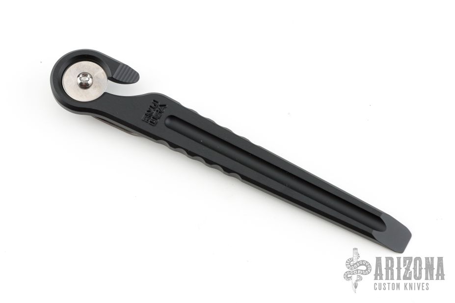 The Tusk is an ultra tough pocket size pry bar designed for daily carry. It's made from CPM-3V and features a chisel style tip for prying, and as an additional feature there is a built in cord and line cutter. The 360 disc cutter can be adjusted with a simple turn of a screw, and it's easily removed if you don't wish to use it. We include a titanium clip that can be clipped to your pants pocket, waistband, backpack, chest rig, vehicle emergency kit, etc. You ask, "Why would I ever need a small pry bar?" The answer is easy, have you ever damaged your knife tip or edge while prying something? There you go! Specifications Blade steel: CPM-3V Tool Finish: Graphite Black Tool length: 6" Blade thickness: .220" Disc Cutter Size: 18mm Weight: 3.3 ounces Pocket Clip: 6AL4V Titanium Uses Prying Jimmying Scraping Chisel Back up defensive tool Perfect for opening boxes Digging Breaking Ice Cord and Line Cutting .