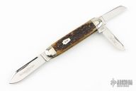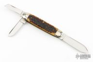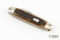 This Schatt & Morgan folder features three mirror polished blades. Nickel Silver front and rear bolsters with jigged bone covers. Brass liners and steel springs. Original box and paper. Excellent condition. 1 of 600.