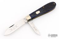 This Tear Drop Jack by Schatt & Morgan features two mirror finished blades. The handle has nickel silver bolsters, jigged bone covers, brass liners and stainless steel springs. Comes with original box and paper. Has some light scratches, otherwise excellent condition.