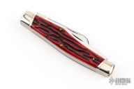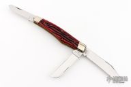 This Reverse Gunstock by Schatt & Morgan features three mirror finished blades. The handle has nickel silver bolsters, jigged bone covers, brass liners and stainless steel springs. Comes with original box and paper. Has some light scratches, otherwise excellent condition.