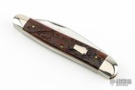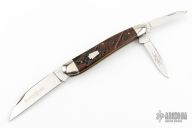 This Whittler by Schatt & Morgan features three mirror finished blades. The handle has nickel silver bolsters, jigged bone covers, brass liners and stainless steel springs. Comes with original box and paper. Has some light scratches, otherwise excellent condition.  1 of 600.