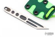This "Bone Chisel" kiridashi by Eric Blair features a hand rub satin finished chisel ground blade with fullers, .120" blade stock and .580" blade depth, full tang construction. Comes with kydex sheath. Excellent condition.