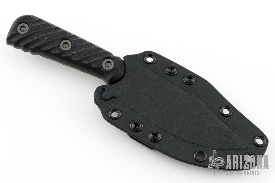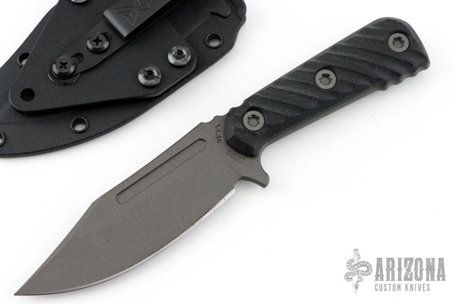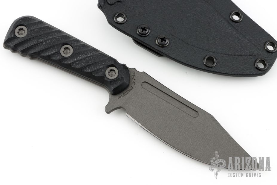 The UCAP is a mid-sized fixed blade that is geared for everyday carry. The knife was created with a defensive purpose in mind, but is also well equipped for any and all cutting chores where a knife is called for, from first responder situations, outdoors activities, and just about anything else you can throw at it. It's a looker too, look at those classic lines and that belly! The UCAP has a bowie-style clip point blade made from Nitro-V steel. The knife features a 4" blade that has a tungsten cerakote finish for corrosion resistance and durability. Weighing in at 5.2 oz, the knife is deceptively light, yet can hold its own in both categories of everyday carry as well as heavy use tactical knife. Offering a full tang and tubed rivet handle construction, this is one tough little knife! The beveled and contoured G10 grips feature a diagonal texturing that offers a very secure grip without being overly aggressive and they work very well wet or dry. Comes with original box, papers and sheath. Excellent condition.