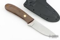 This K-16 Yukon Pro Skinner by Dozier Knives features a satin finished blade with .137" blade stock and 1.032" blade depth, full tang construction. The handle has green canvas micarta scales with brass pins and lanyard hole. Comes with kydex sheath with belt clip. New from maker.