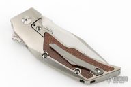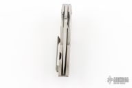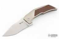 Experience Reate quality in a scaled down EDC friendly size with the Tashi Bharucha designed T3000. This T3000 model showcases a bead blasted titanium handle with burlap micarta inlays and a satin finished recurve blade. Ceramic bearings facilitate smooth and fast deployment of the highly effective blade. This sturdy T3000 folding knife offers distinctive Bharucha style and a pocket friendly design. Features: Low-profile blade flipper offers comfortable pocket carry and rapid one-hand deployment. Bohler M390 steel offers high corrosion and wear resistance. Titanium pocket clip for convenient tip-up carry. Green anodized titanium hardware. Comes with maker's zipper case, pouch and cloth. Excellent condition.
